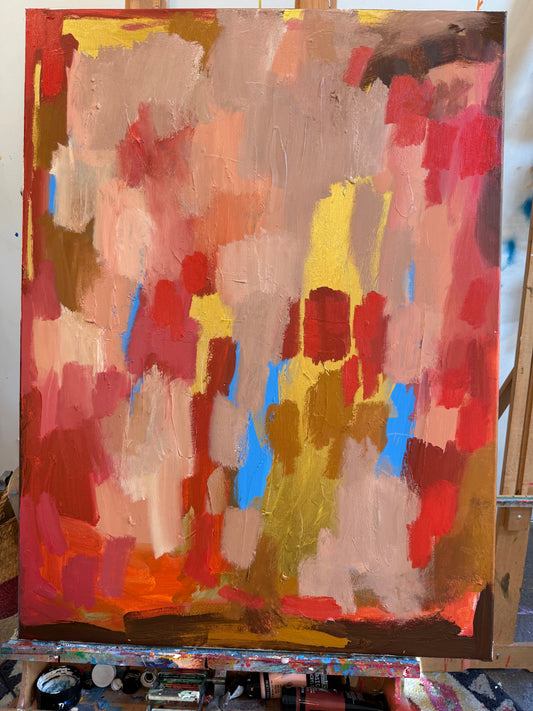 In From Heat to Hush, I try to capture this change not by painting literal landscapes, but with abstract art. You'll see shifting colors, layered brushstrokes, and textures that capture the magic of the seasons changing. Starting with the lively energy and heat of August and smoothly moving into the gentle whispers of November, these artworks explore abundance and the beauty of letting go.