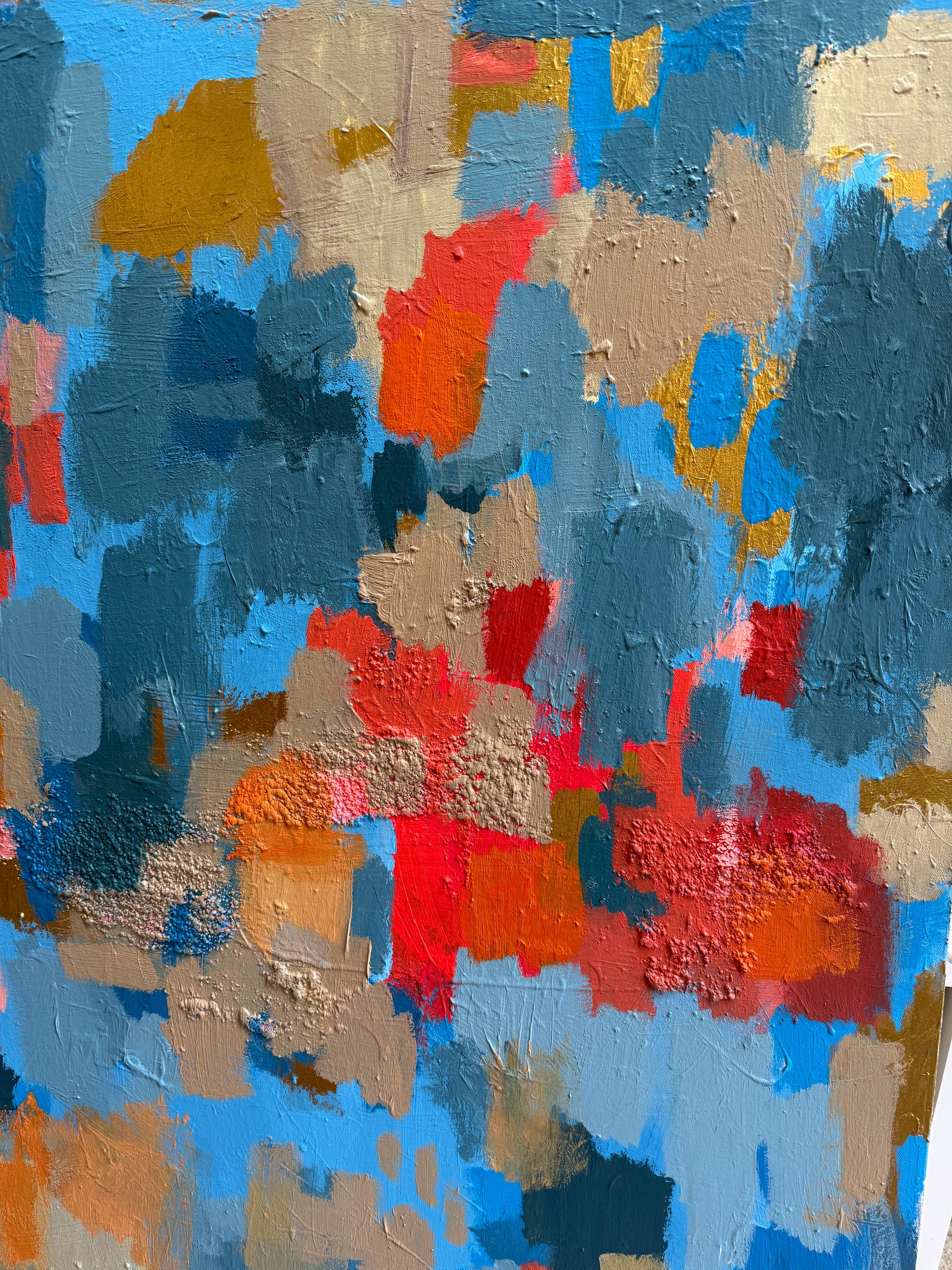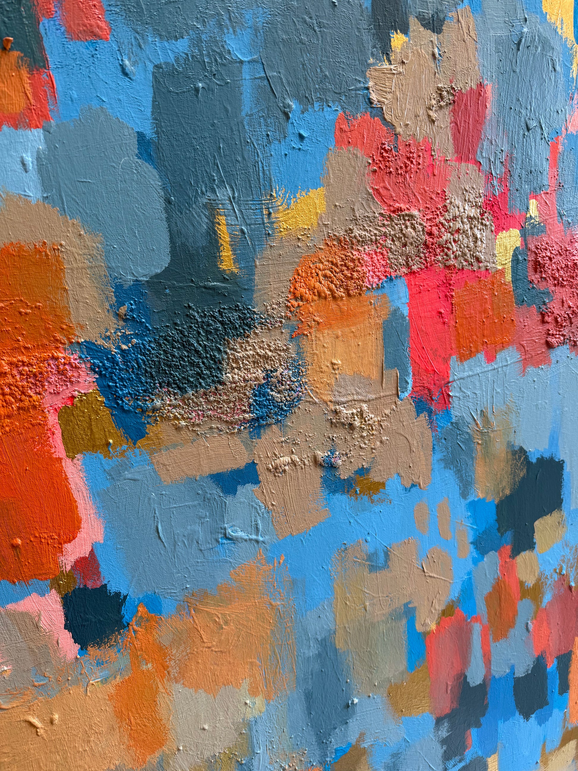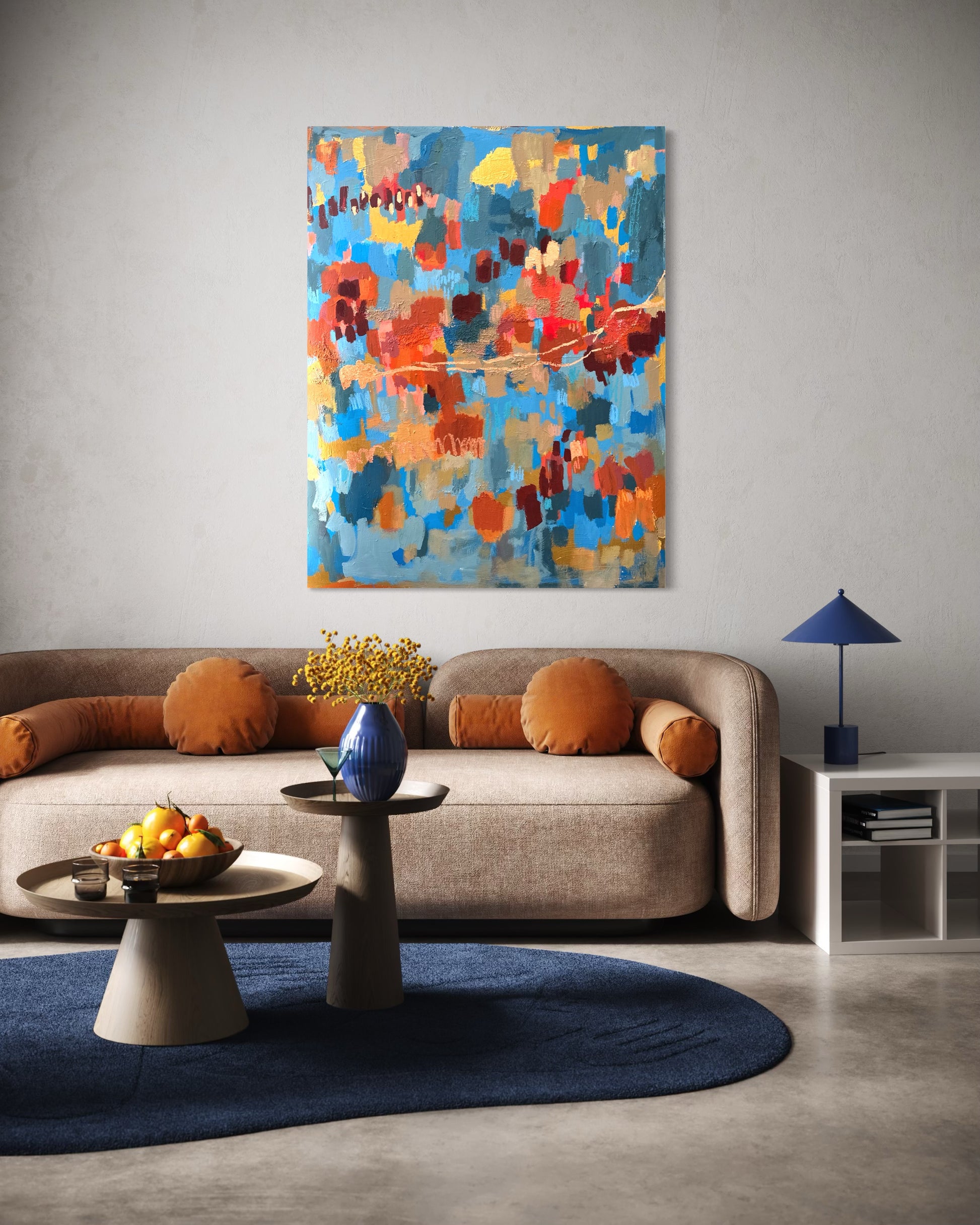 This artwork is inspired by the essence of monarch butterflies, featuring rich hues of burnt orange, gold, rust, and sky blue that capture the feeling of wings soaring gently through time and distance. Monarchs follow the sun and their inner guidance on their journey. "Emergence" portrays this flight alongside a landscape that offers a sense of grounding, hope, and peaceful arrival. 🦋