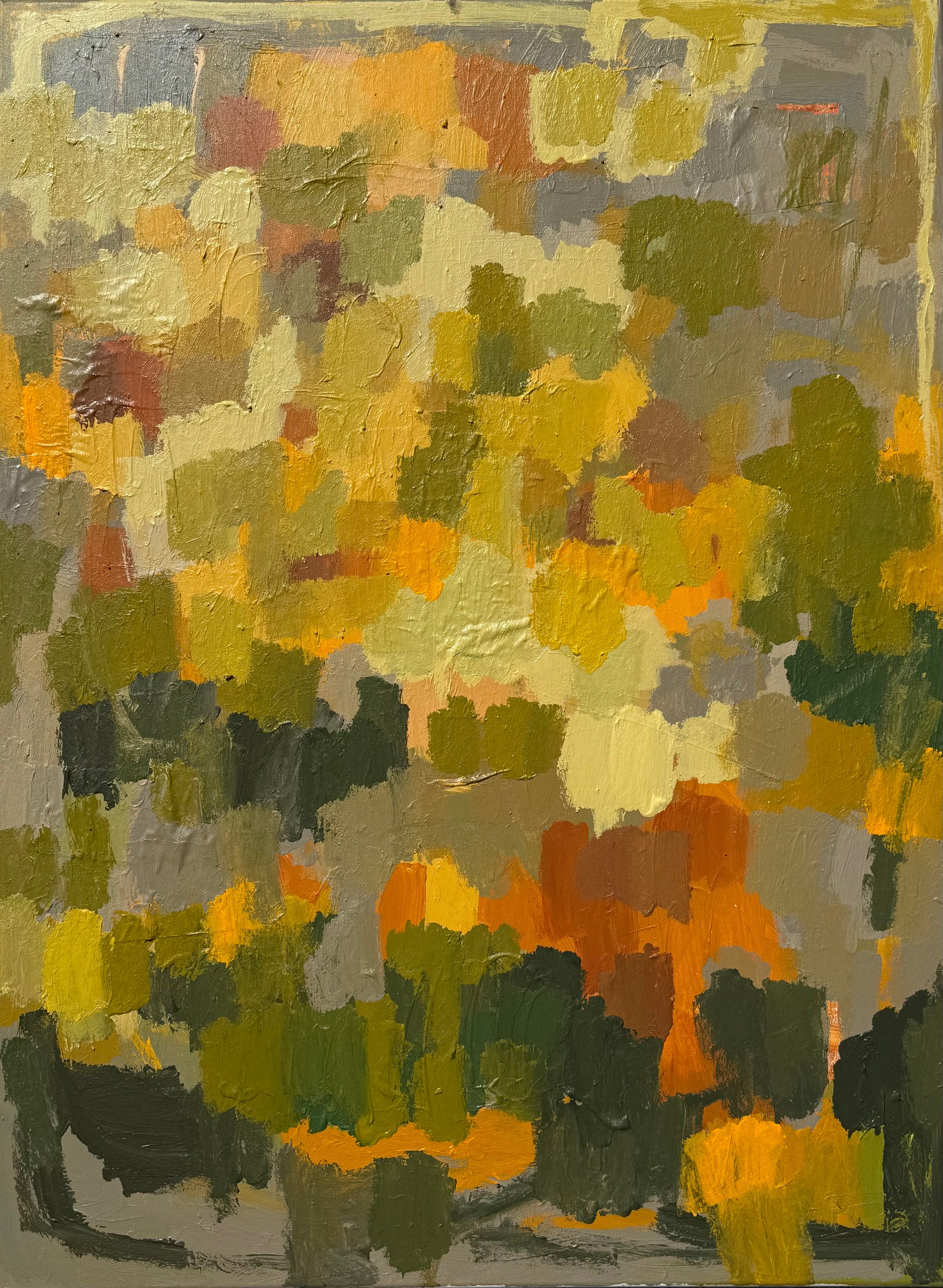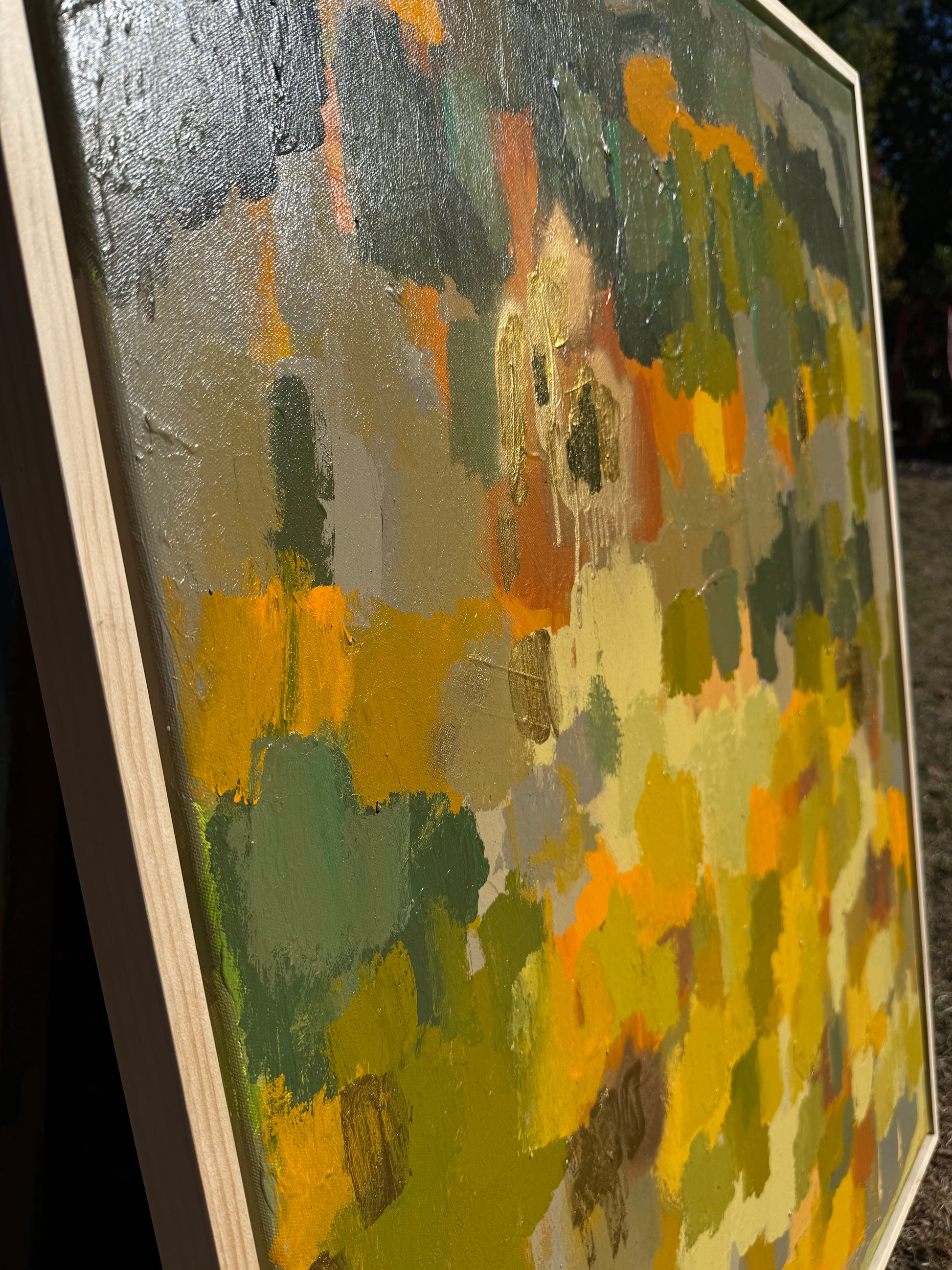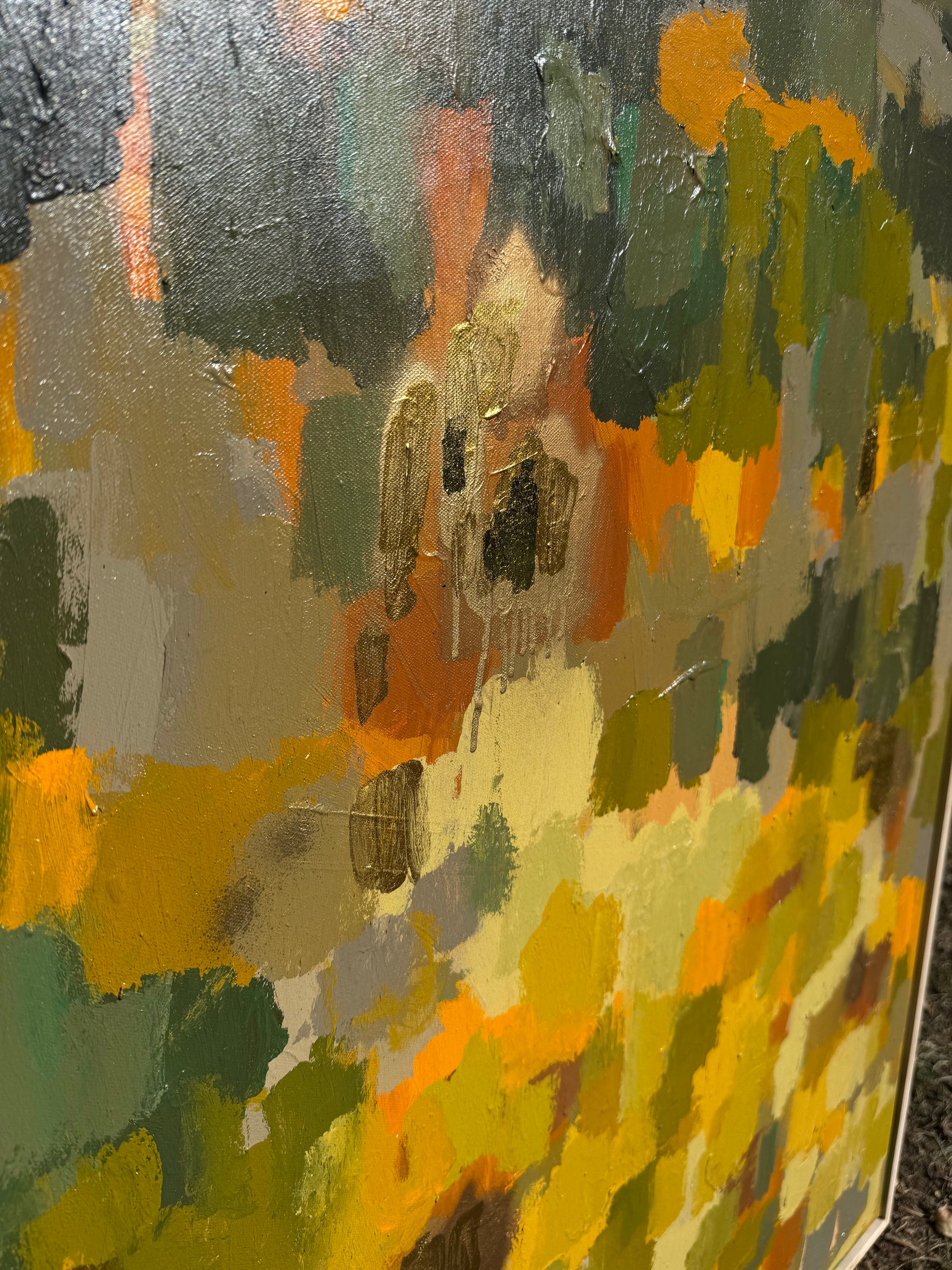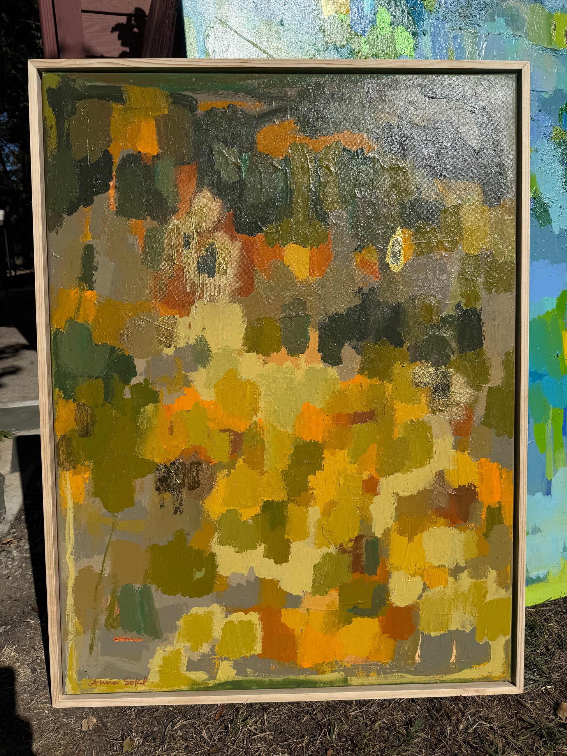 Mixed media on canvas, 30x40 inches, framed in natural pine