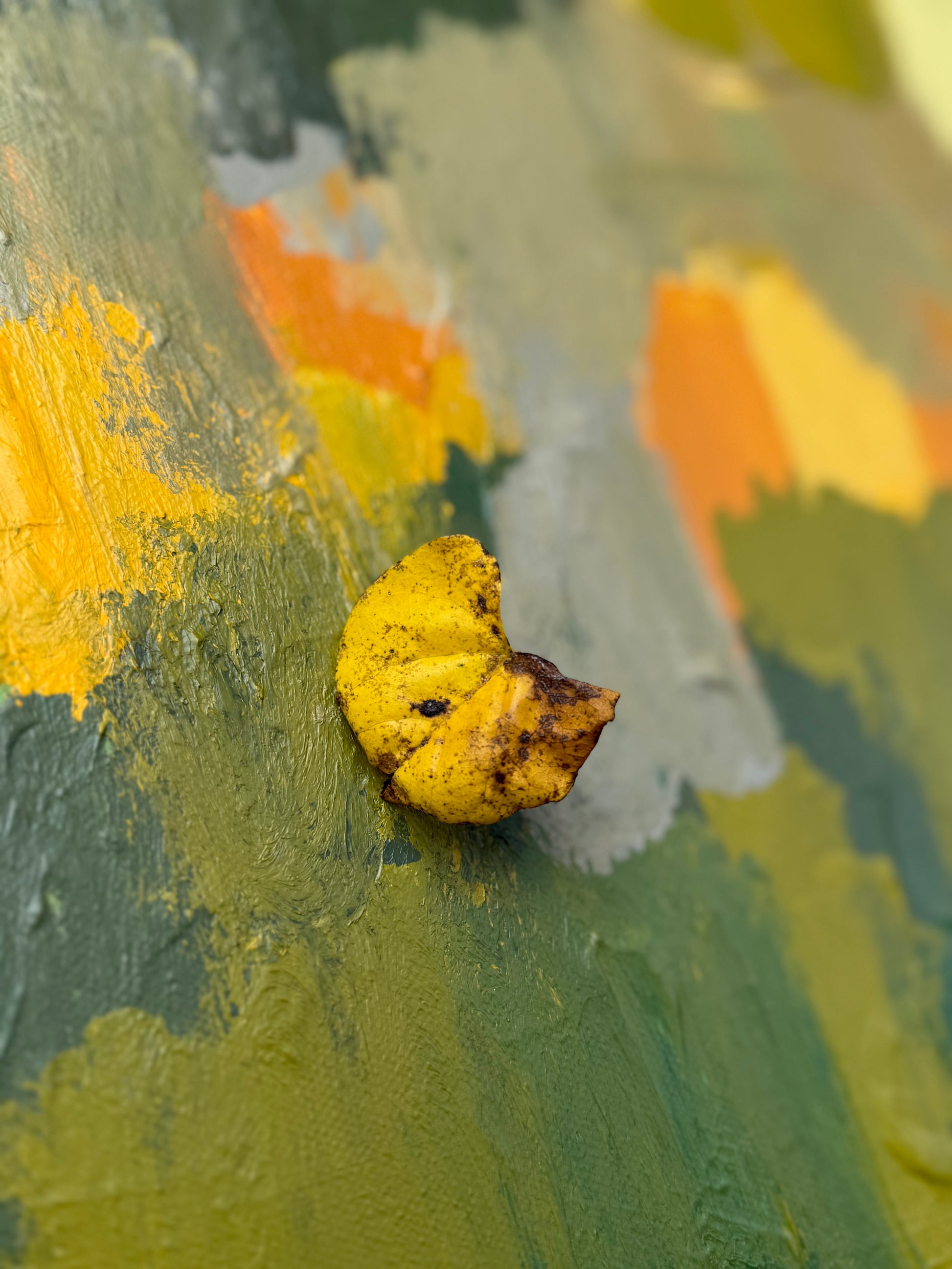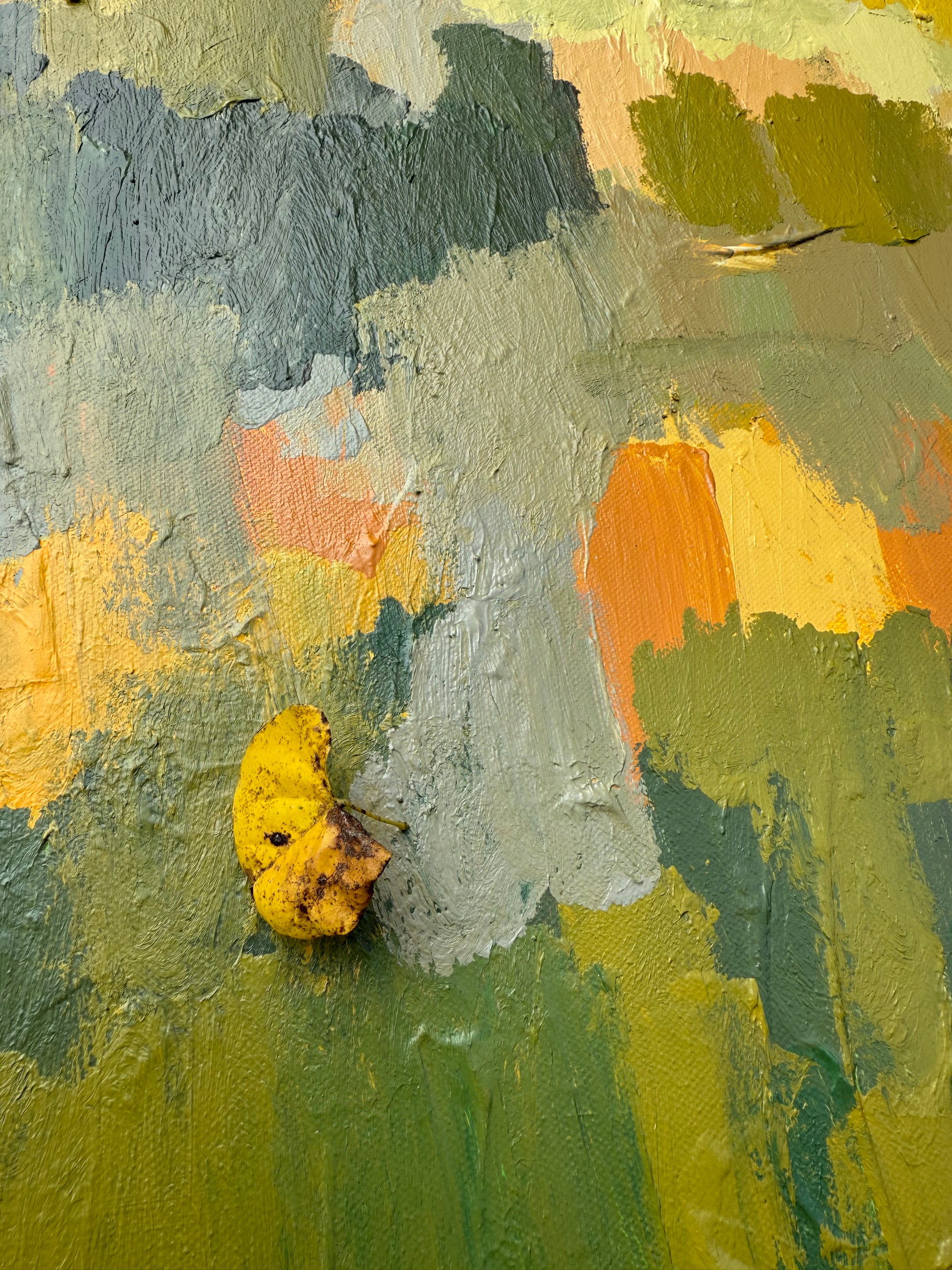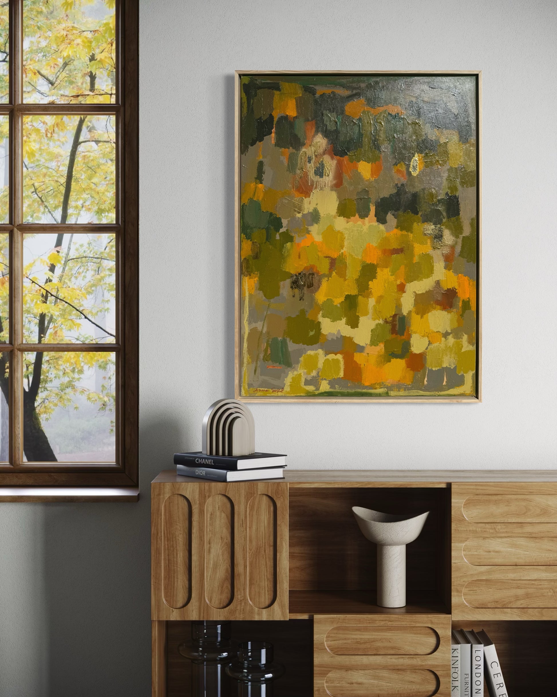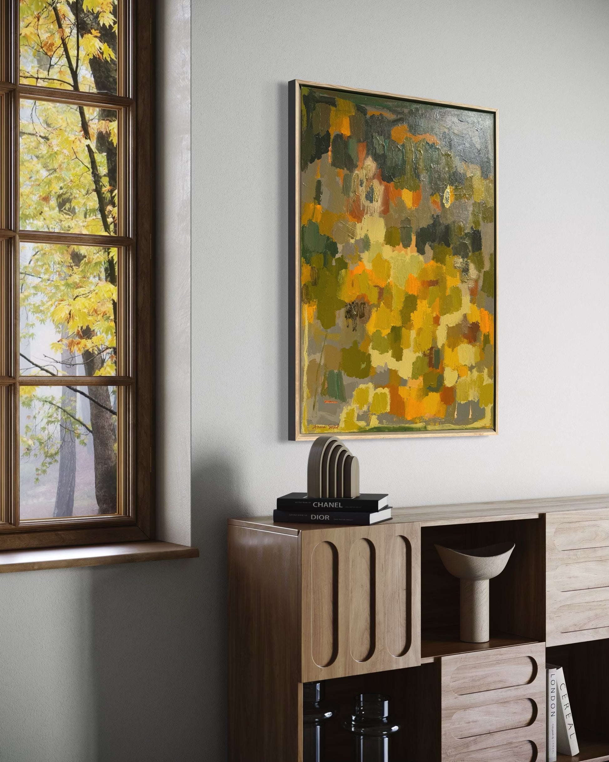 Mixed media on canvas, 30x40 inches, framed in natural pine